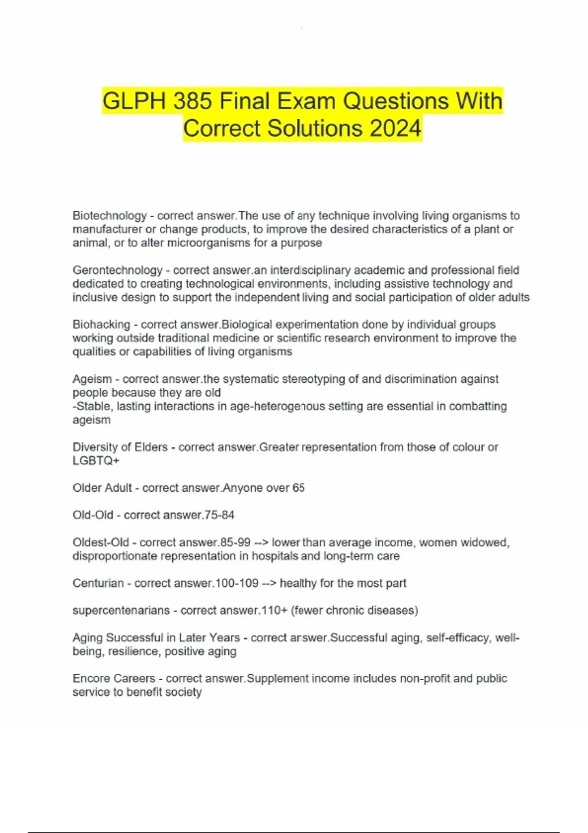GLPH 385 Final Exam Questions With Correct Solutions 2024