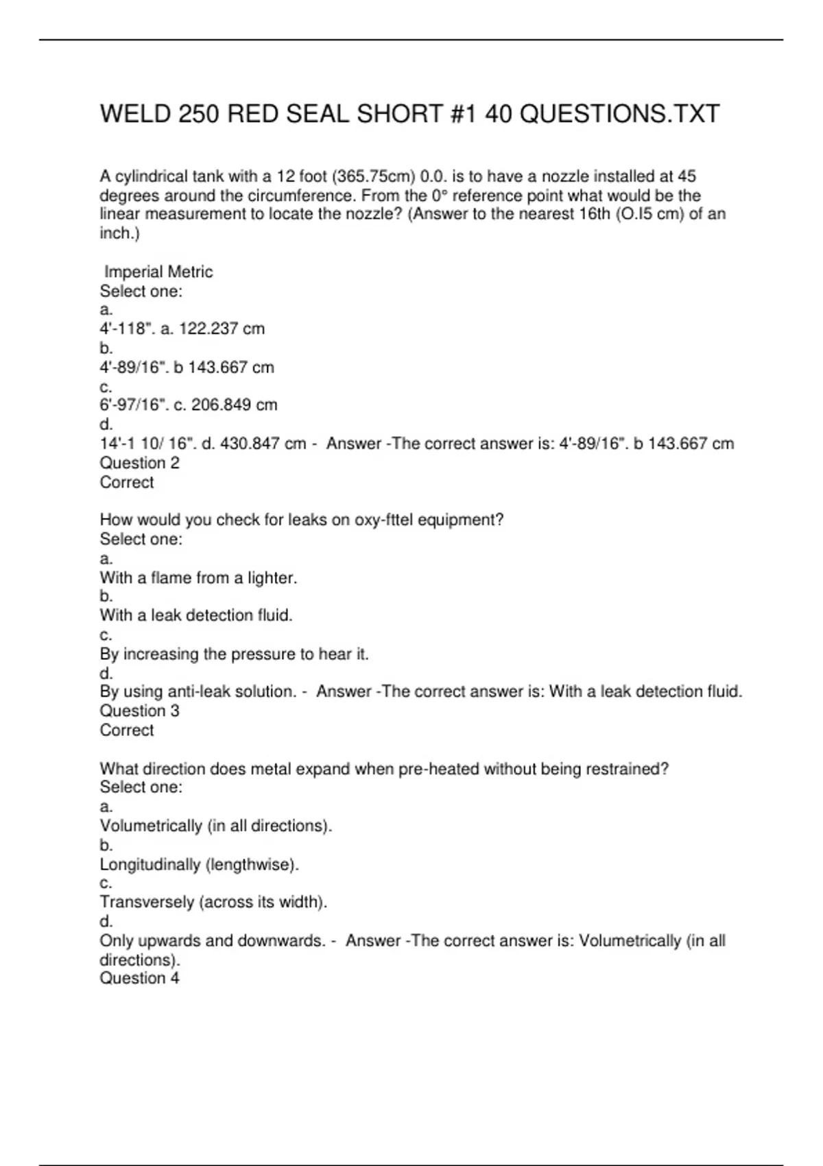 WELD 250 RED SEAL SHORT -1 40 QUESTIONS.TXT