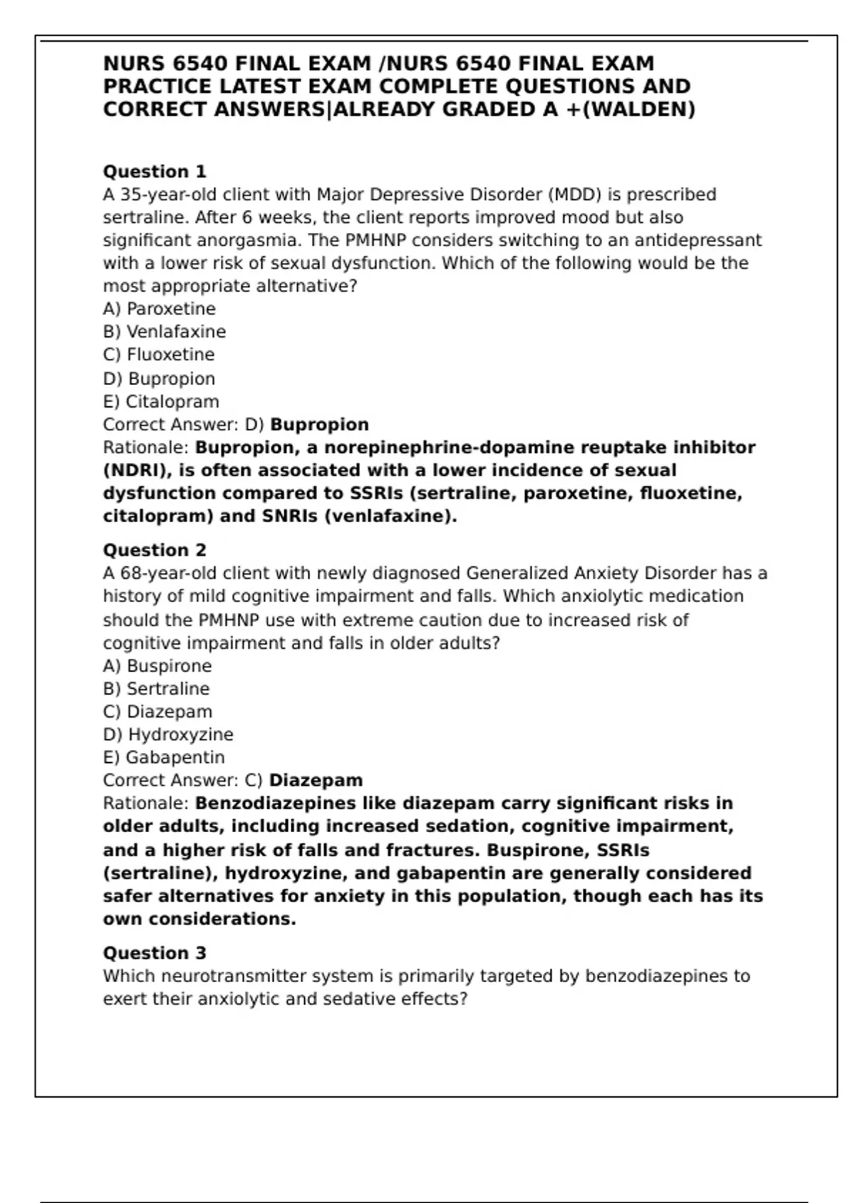 NURS 6540 FINAL EXAM LATEST /NURS 6540 WEEK 11 FINAL EXAM PREP/NURS 6540 FINAL EXAM PRACTICE LATEST EXAM COMPLETE QUESTIONS AND CORRECT ANSWERS|ALREADY GRADED A +(WALDEN)
