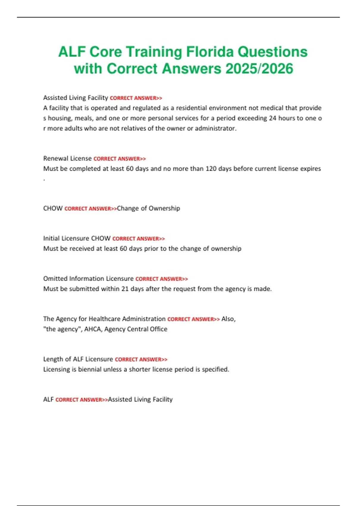 Length of ALF Licensure CORRECT ANSWER>>