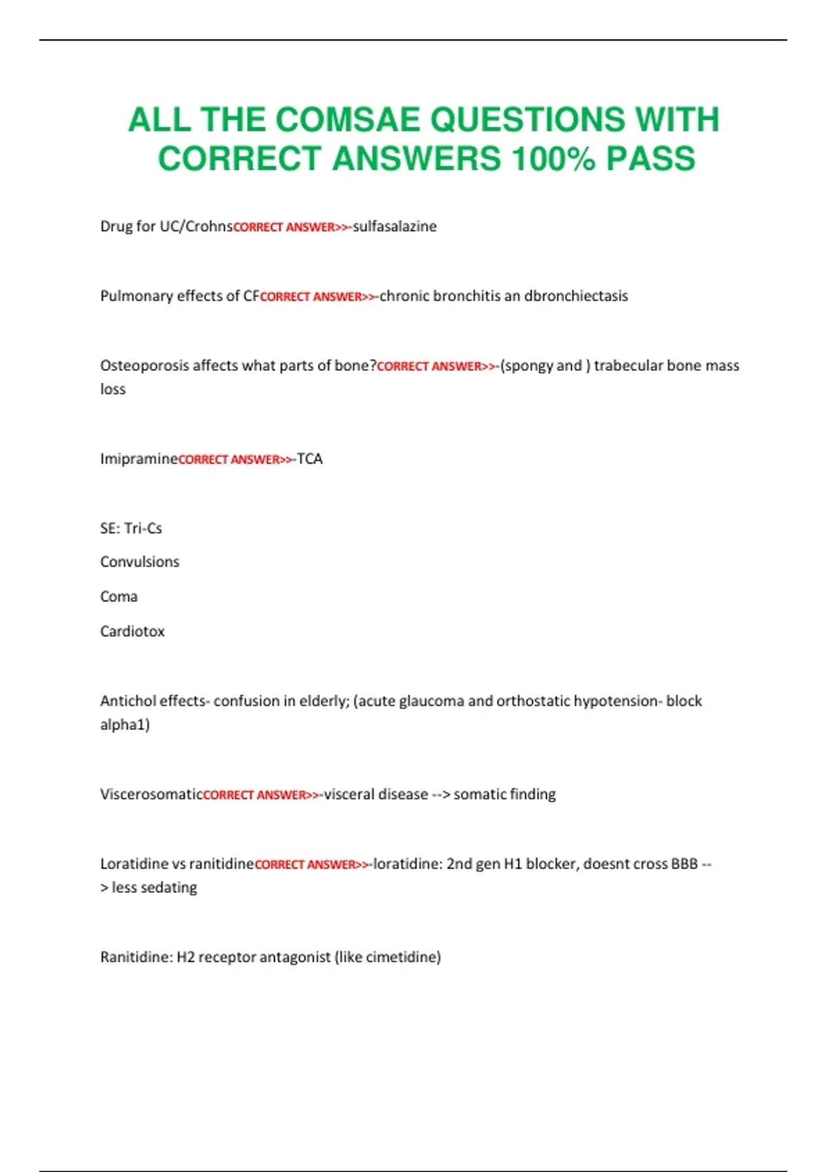ALL THE COMSAE QUESTIONS WITH CORRECT ANSWERS 100% PASS