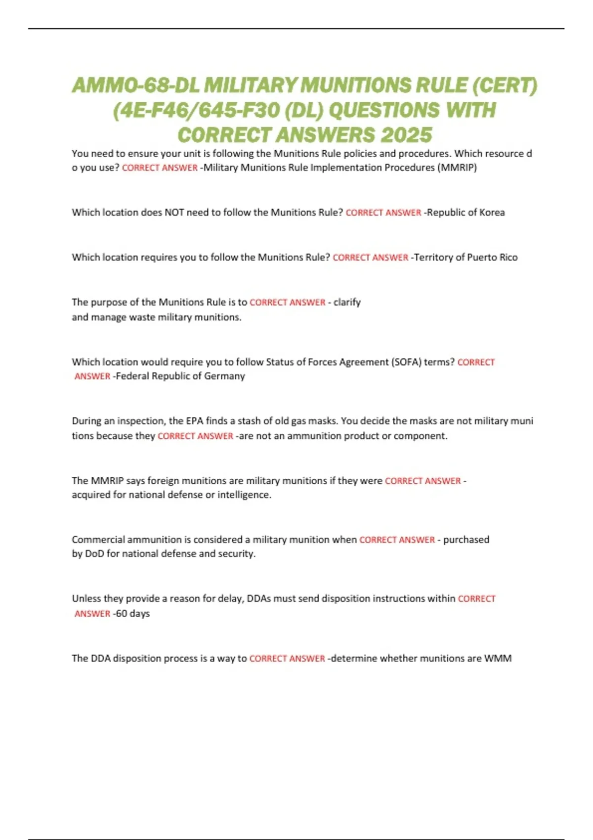 CORRECT ANSWERS 2025