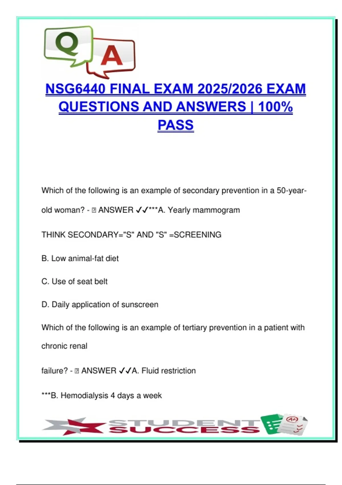 old woman? - 🧠 ANSWER ✔✔***A. Yearly mammogram
