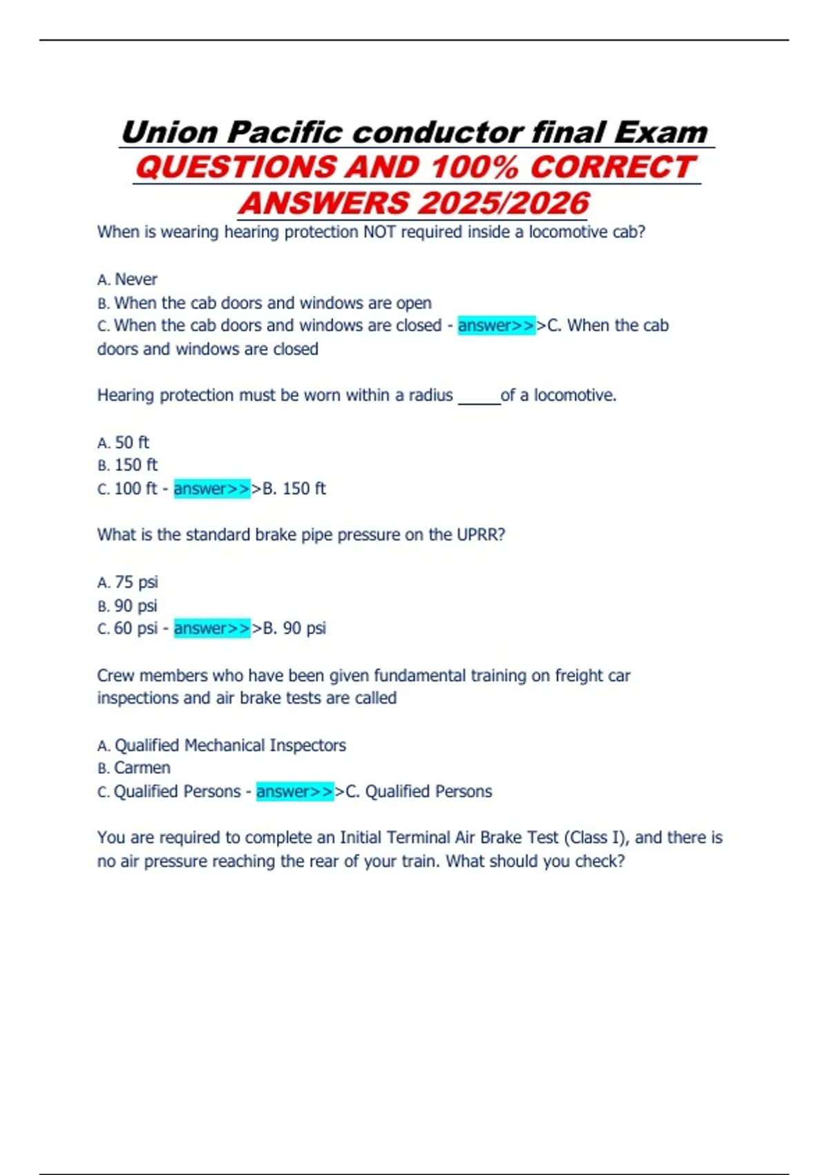 Union Pacific conductor final Exam QUESTIONS AND 100% CORRECT ANSWERS 2025/2026