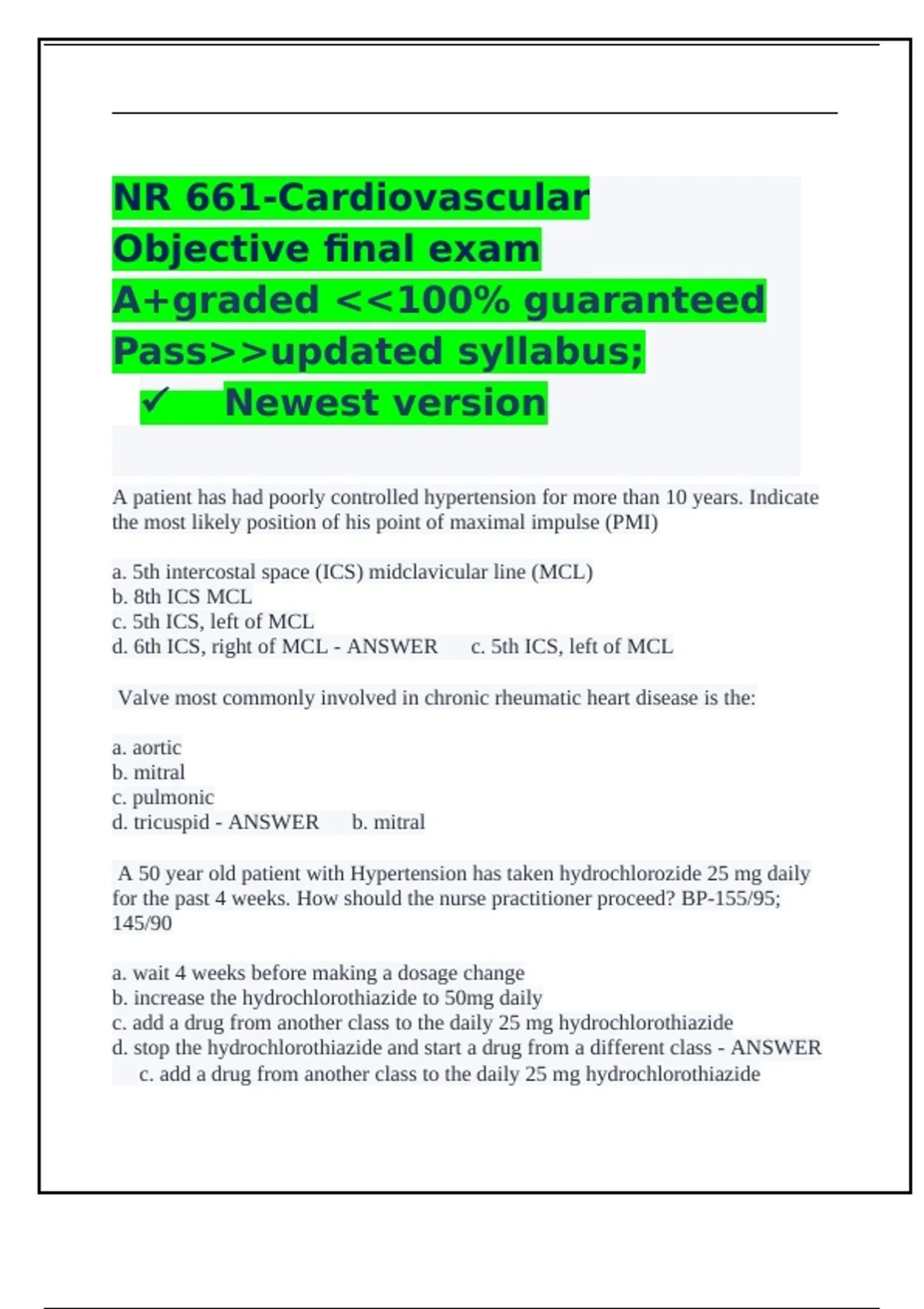 d. mitral stenosis - ANSWER ✅c. mitral valve prolapse