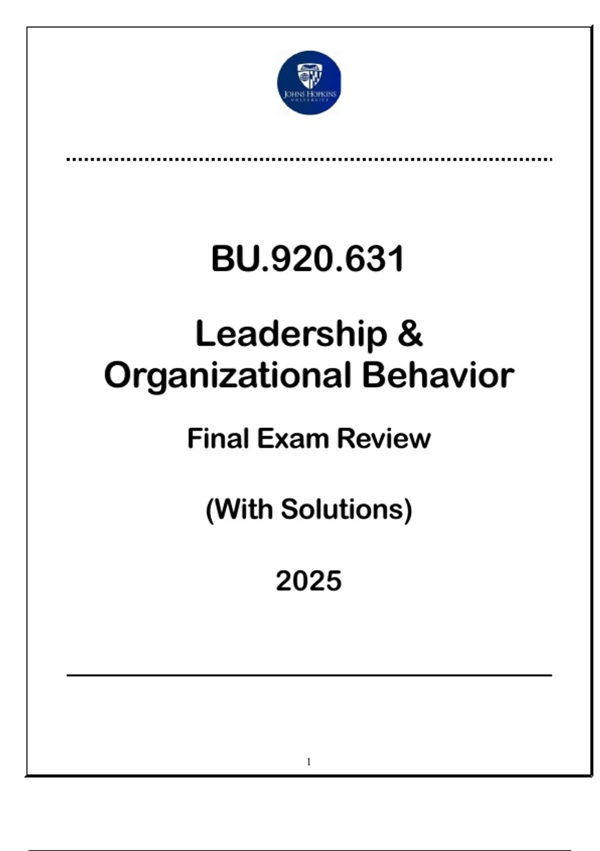 BU.920.631 (Leadership & Organizational Behavior) Final Exam Review (with Solutions) 2025.BU.920.631 (Leadership & Organizational Behavior) Final Exam Review (with Solutions) 2025.BU.920.631 (Leadership & Organizational Behavior) Final Exam Review (with Solutions) 2025.