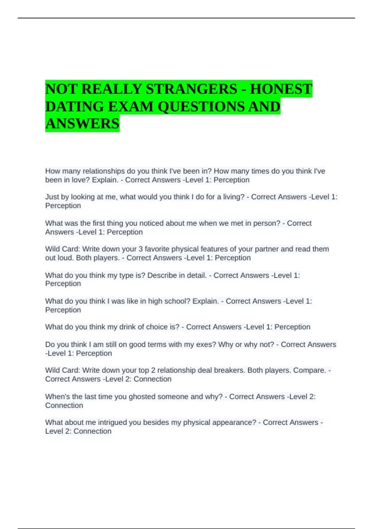 NOT REALLY STRANGERS - HONEST DATING EXAM QUESTIONS AND ANSWERS