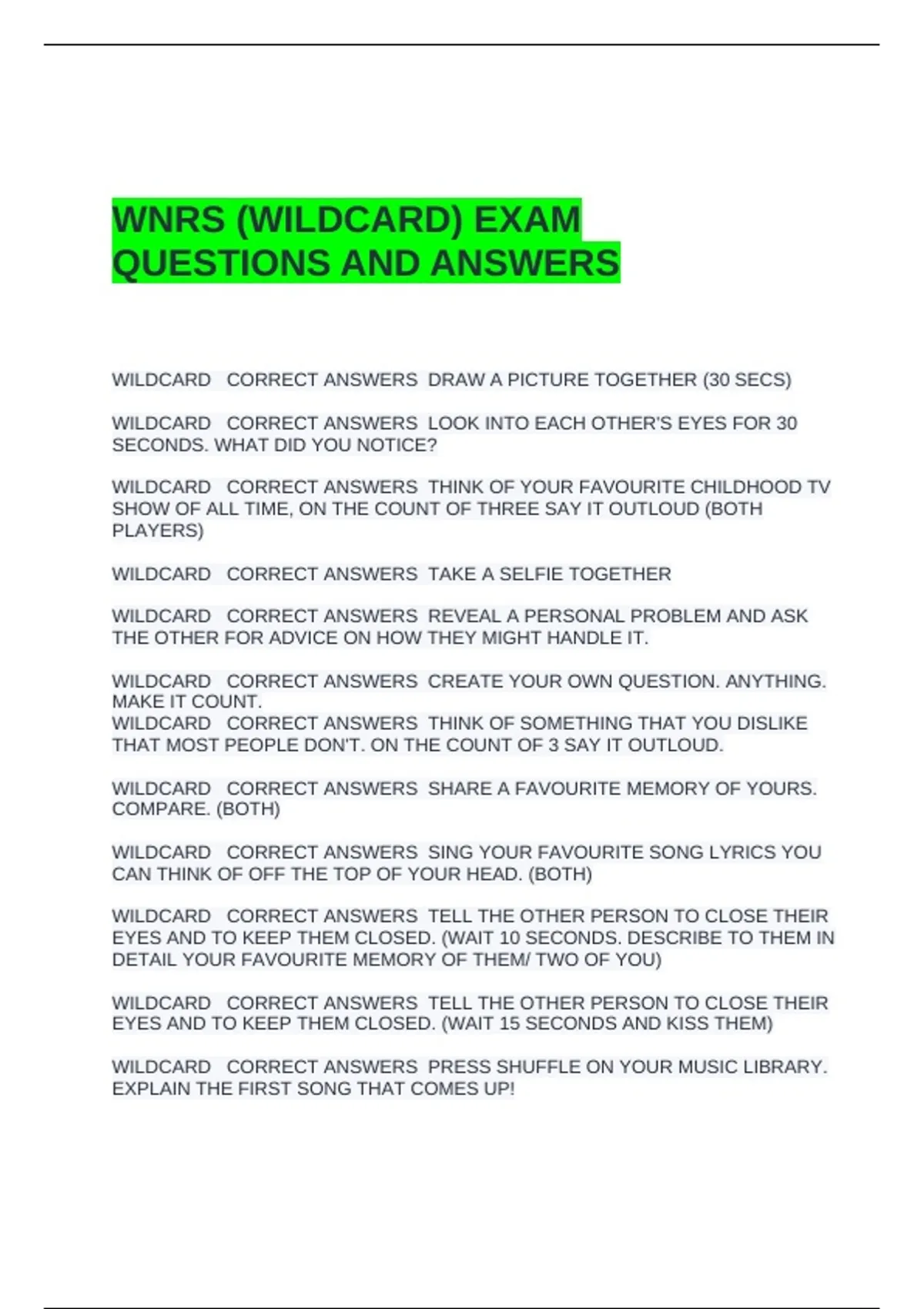 WILDCARD CORRECT ANSWERS PRESS SHUFFLE ON YOUR MUSIC LIBRARY.