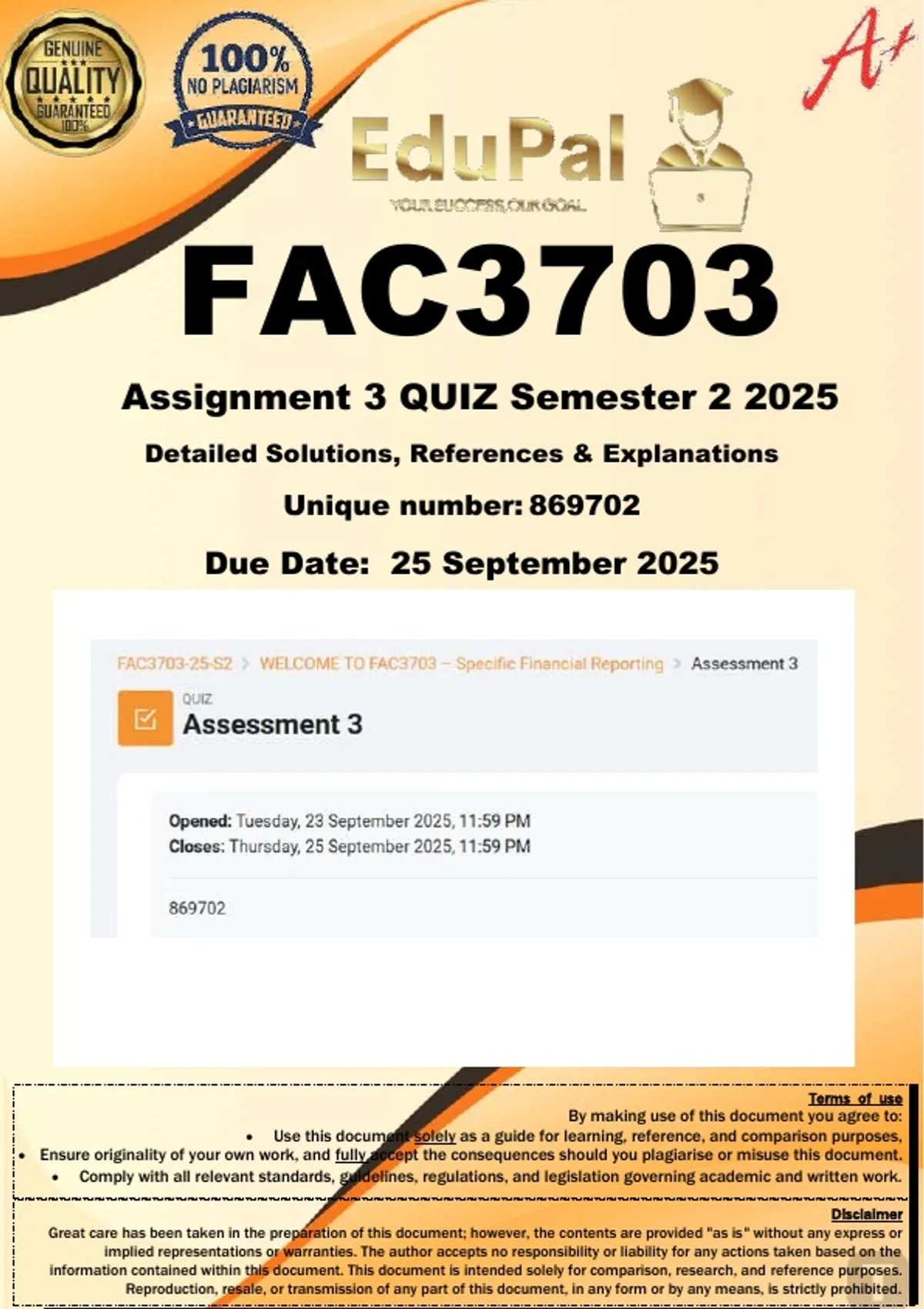 , FAC3703-25-S2 WELCOME TO FAC3703 – Specific Financial Reporting Assessment 3