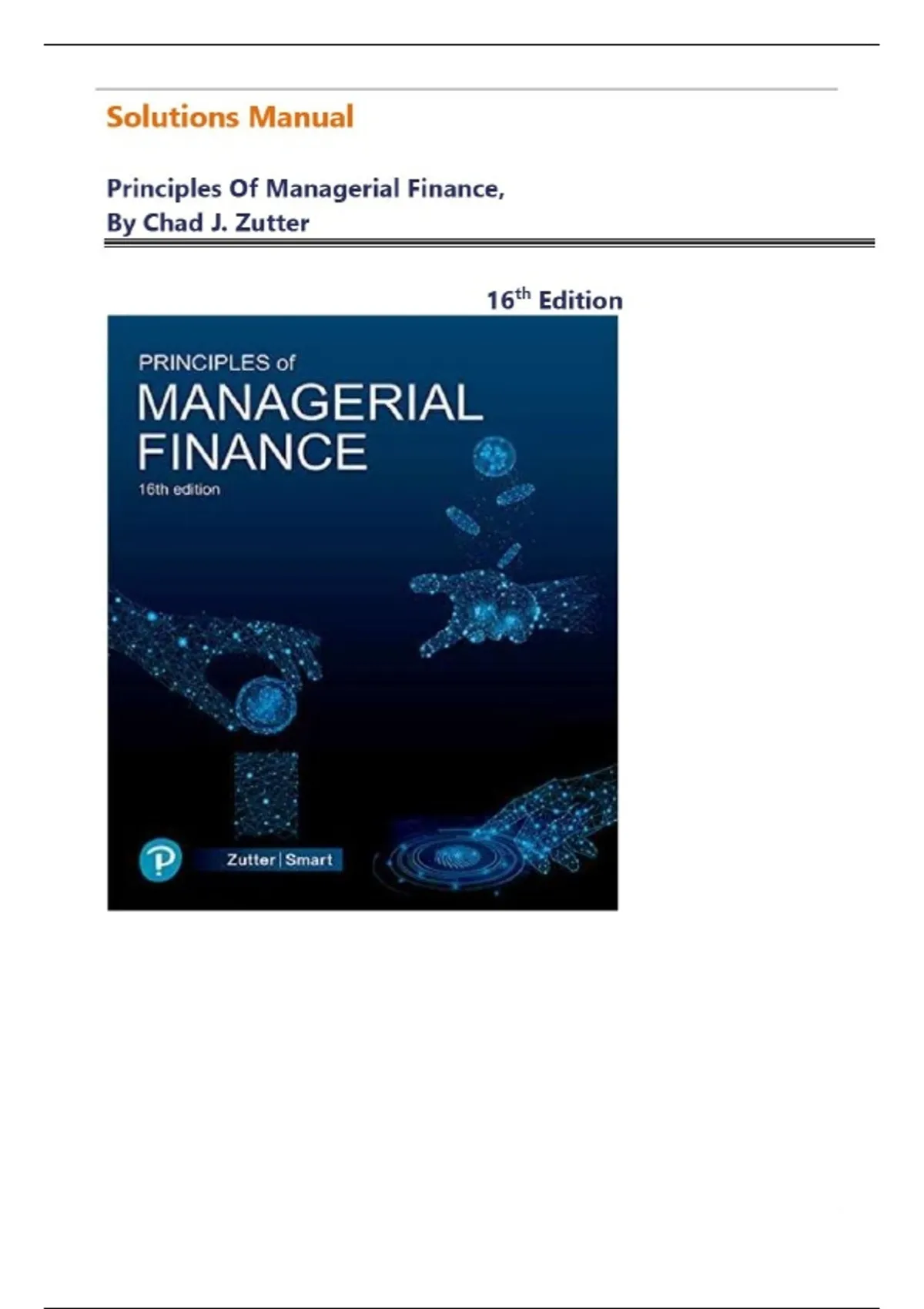 Solutions Manual for Principles of Managerial Finance, 16th Edition by Chad J. Zutter ,Verified Chapters 1-19|| Latest Update 2025