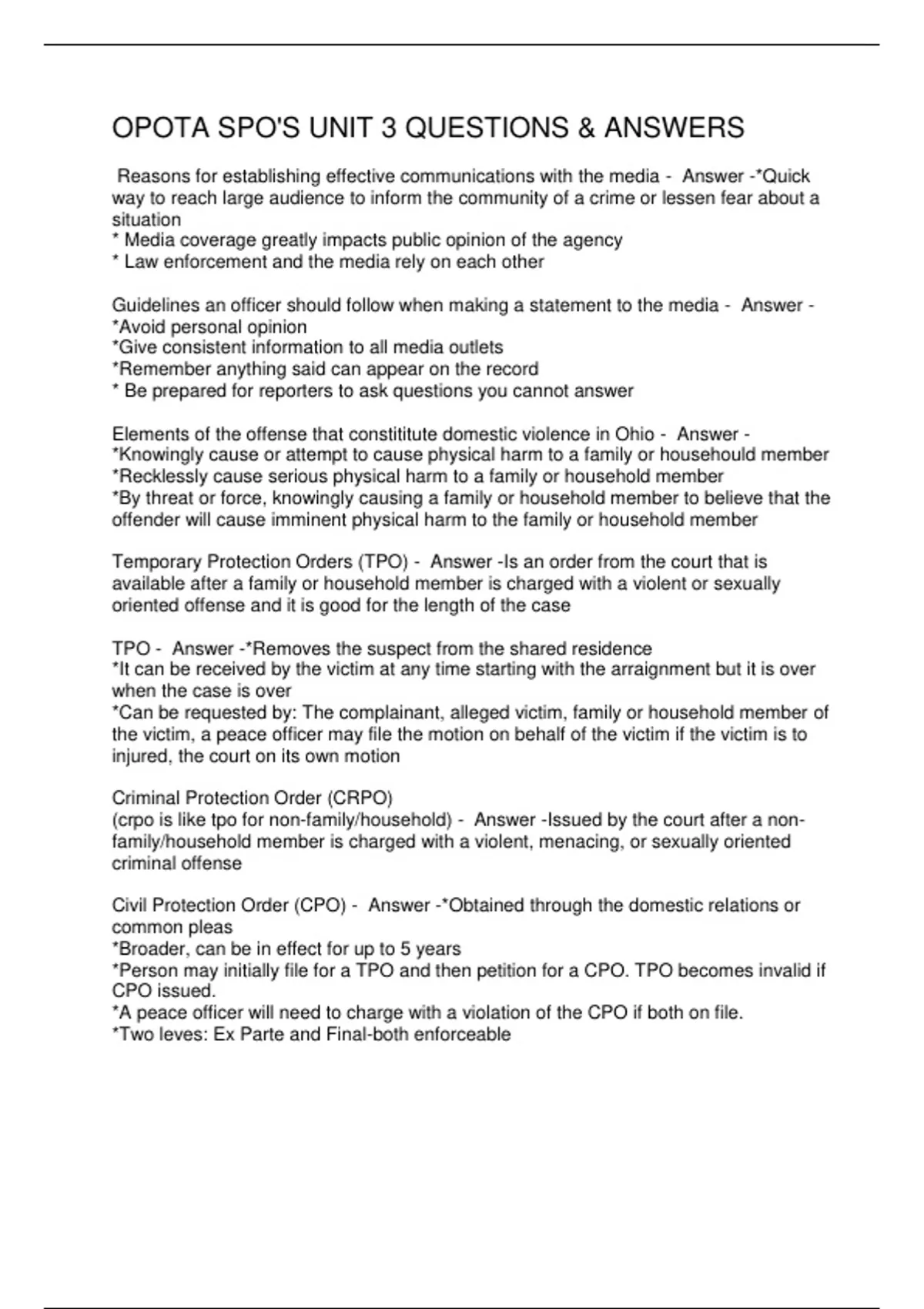OPOTA SPO'S UNIT 3 QUESTIONS & ANSWERS