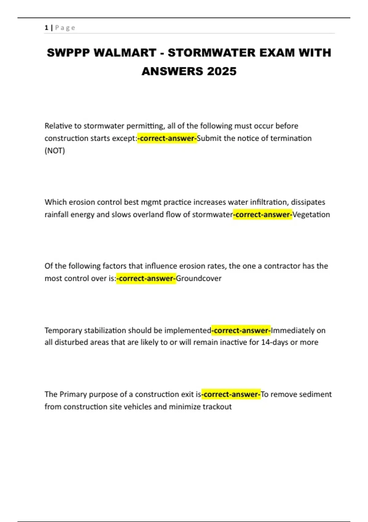 SWPPP WALMART - STORMWATER EXAM WITH ANSWERS 2025