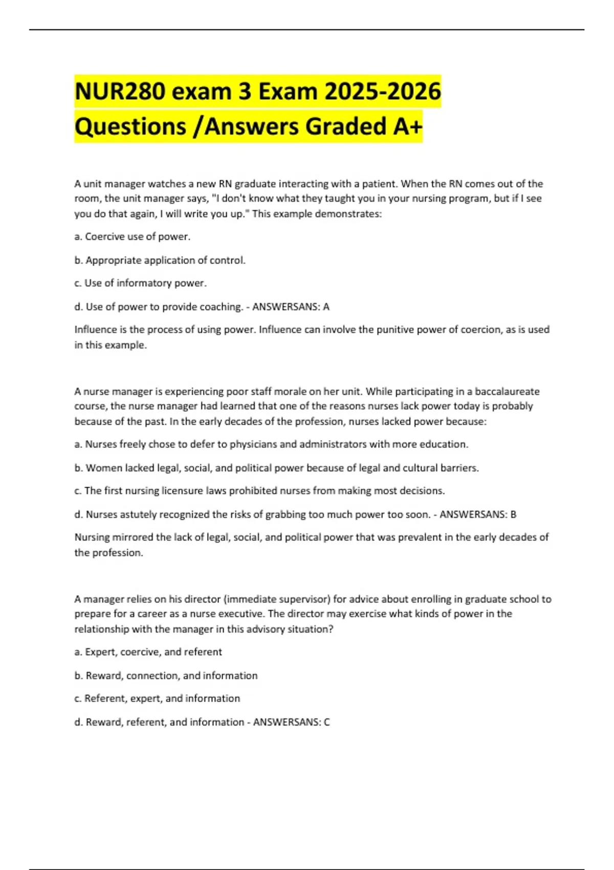 d. Use of power to provide coaching. - ANSWERSANS: A