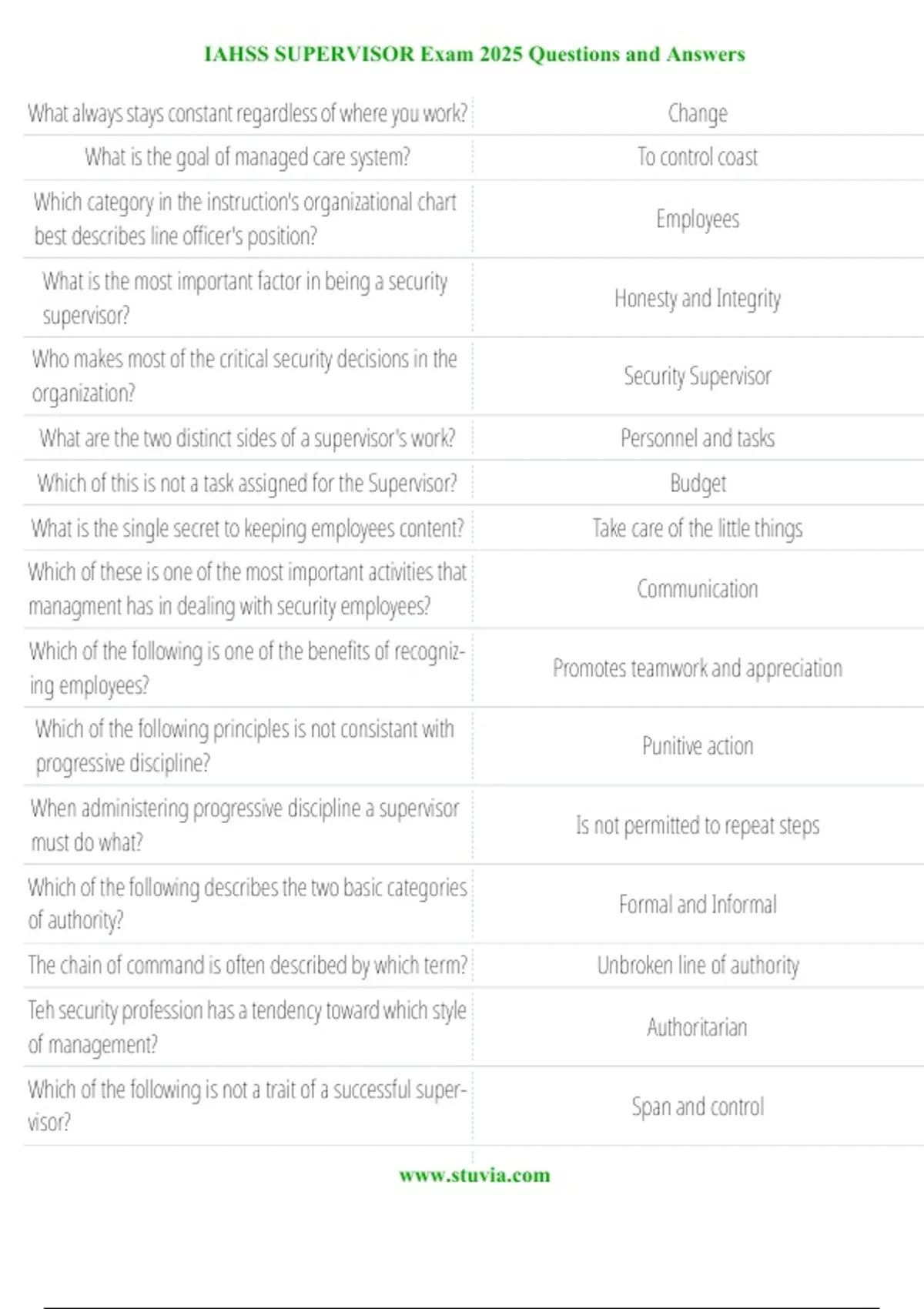 Prepare effectively for success with the IAHSS Supervisor Exam 2025 Questions and Answers Study Guide. This comprehensive resource includes verified Q&A designed to help you master the IAHSS Supervisor-level certification. Covering key topics in healthcare security, supervisory responsibilities, and industry standards, this guide ensures you’re fully equipped for exam day. Perfect for professionals aiming to advance their careers in healthcare security, it provides reliable, accurate, and exam-focused material to guarantee A+ results.