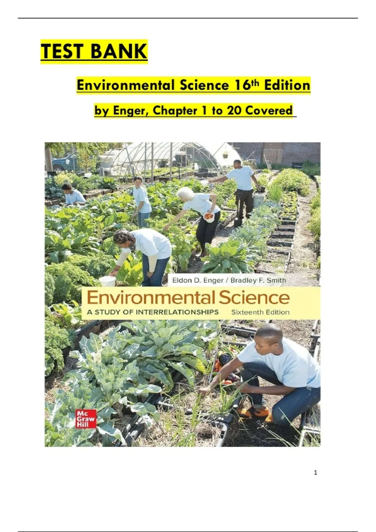 TEST BANK Environmental Science 16th Edition by Enger, Chapter 1 to 20 Covered