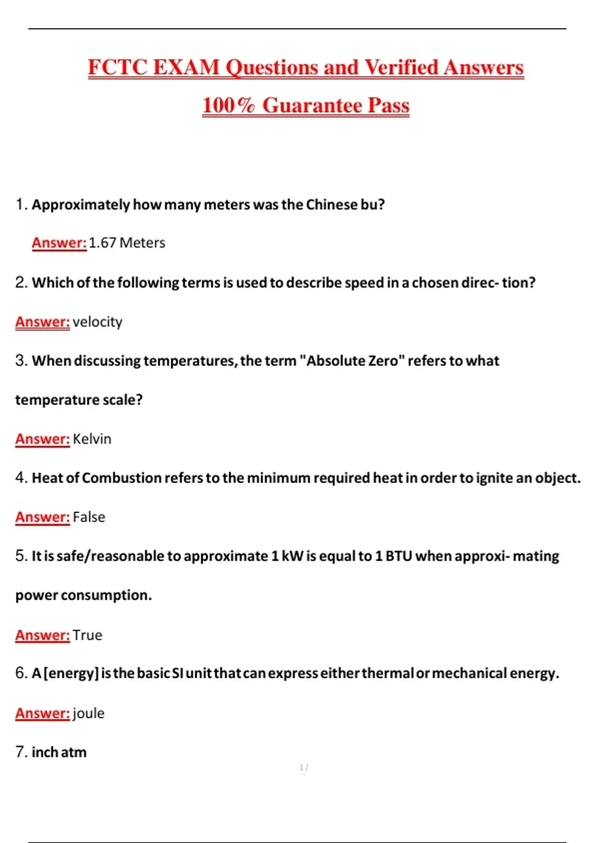4. Heat of Combustion refers to the minimum required heat in order to ignite an object.