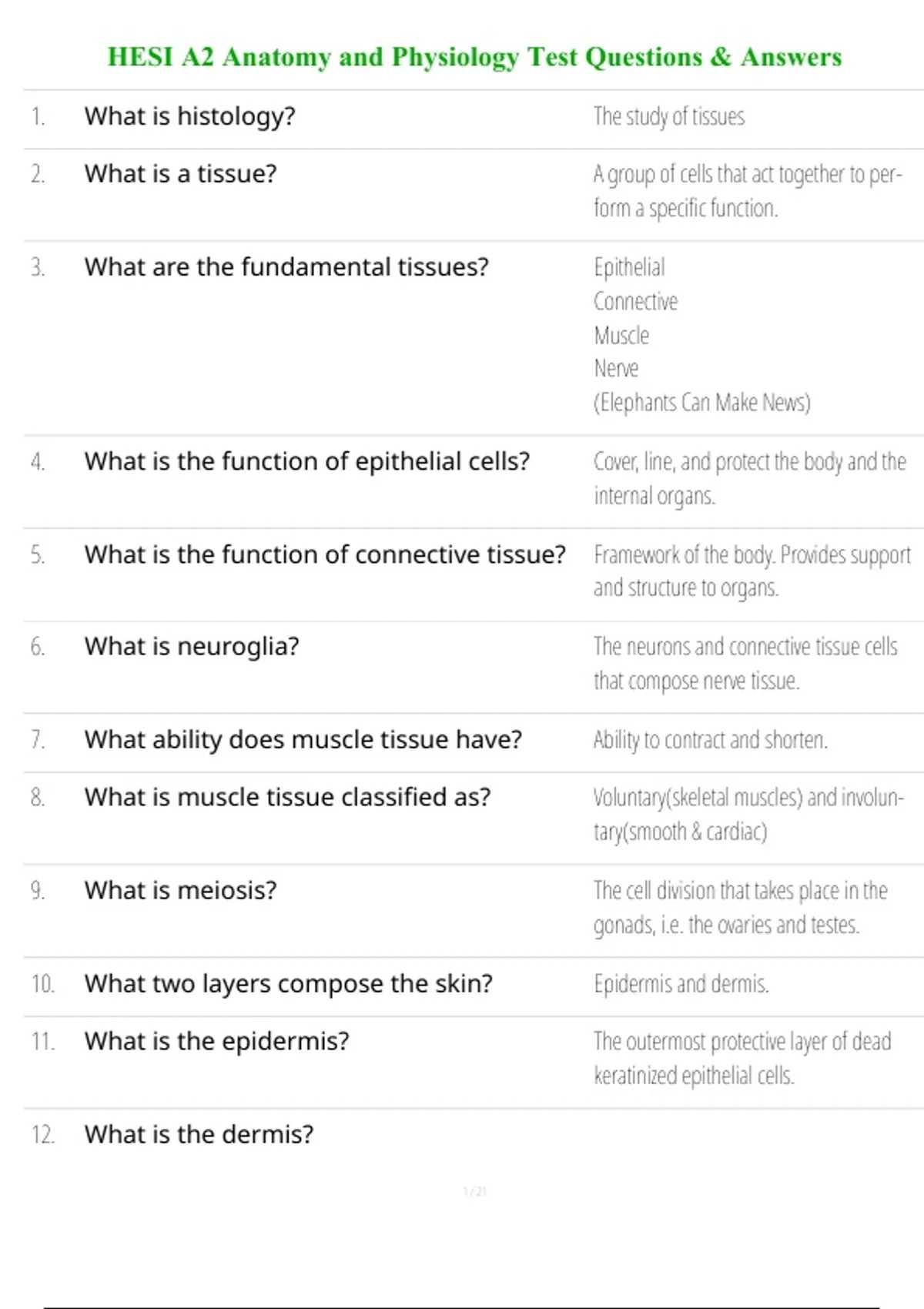 HESI A2 Anatomy and Physiology Test Questions & Answers