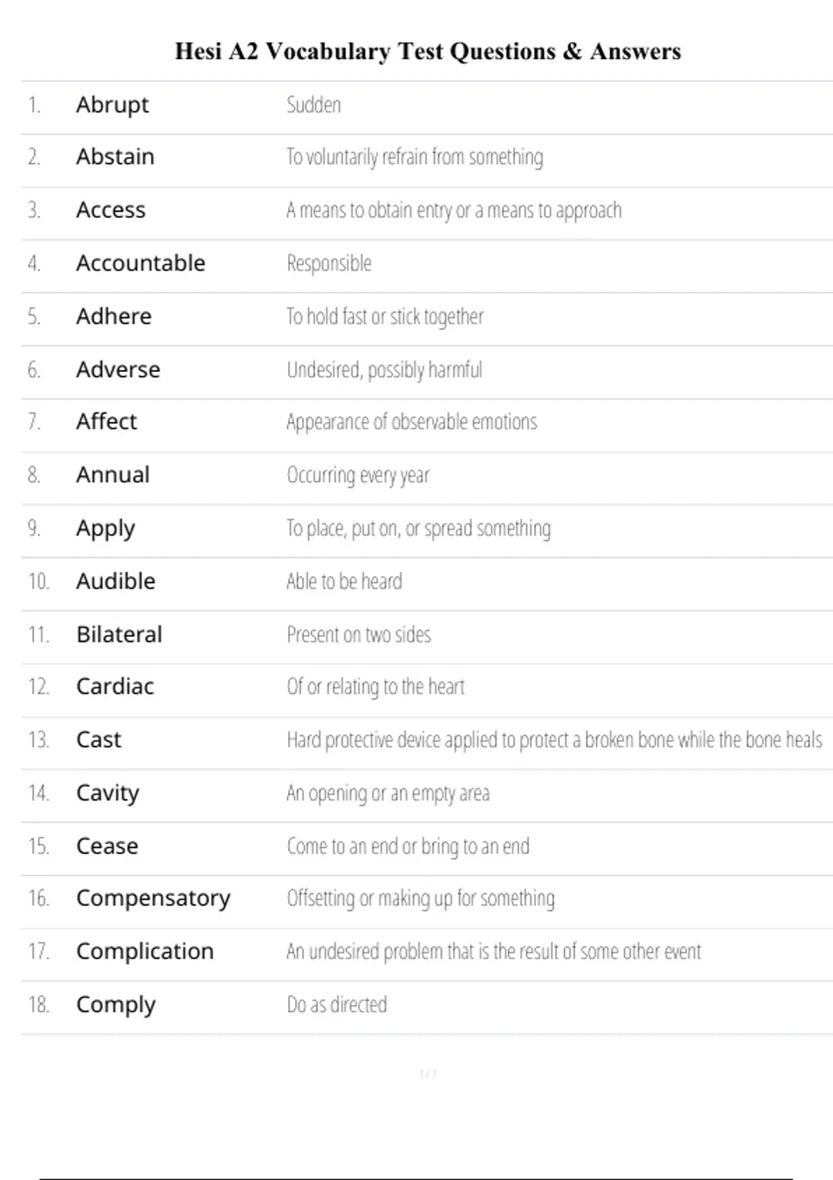 , Hesi A2 Vocabulary