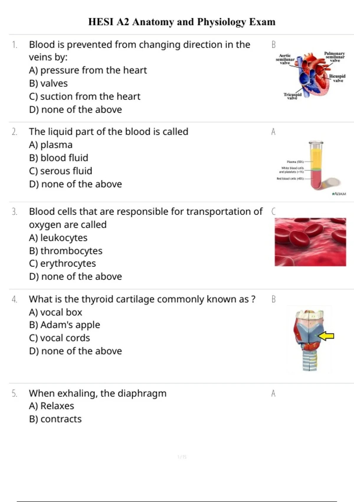 , HESI A2 Anatomy and Physiology 2021
