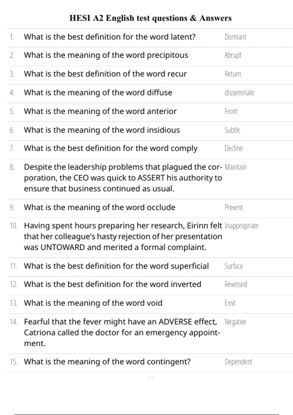 HESI A2 English Study Guide with Solution 2025/2026 – Grammar, Vocabulary, Reading Comprehension, and Exam Preparation Tips