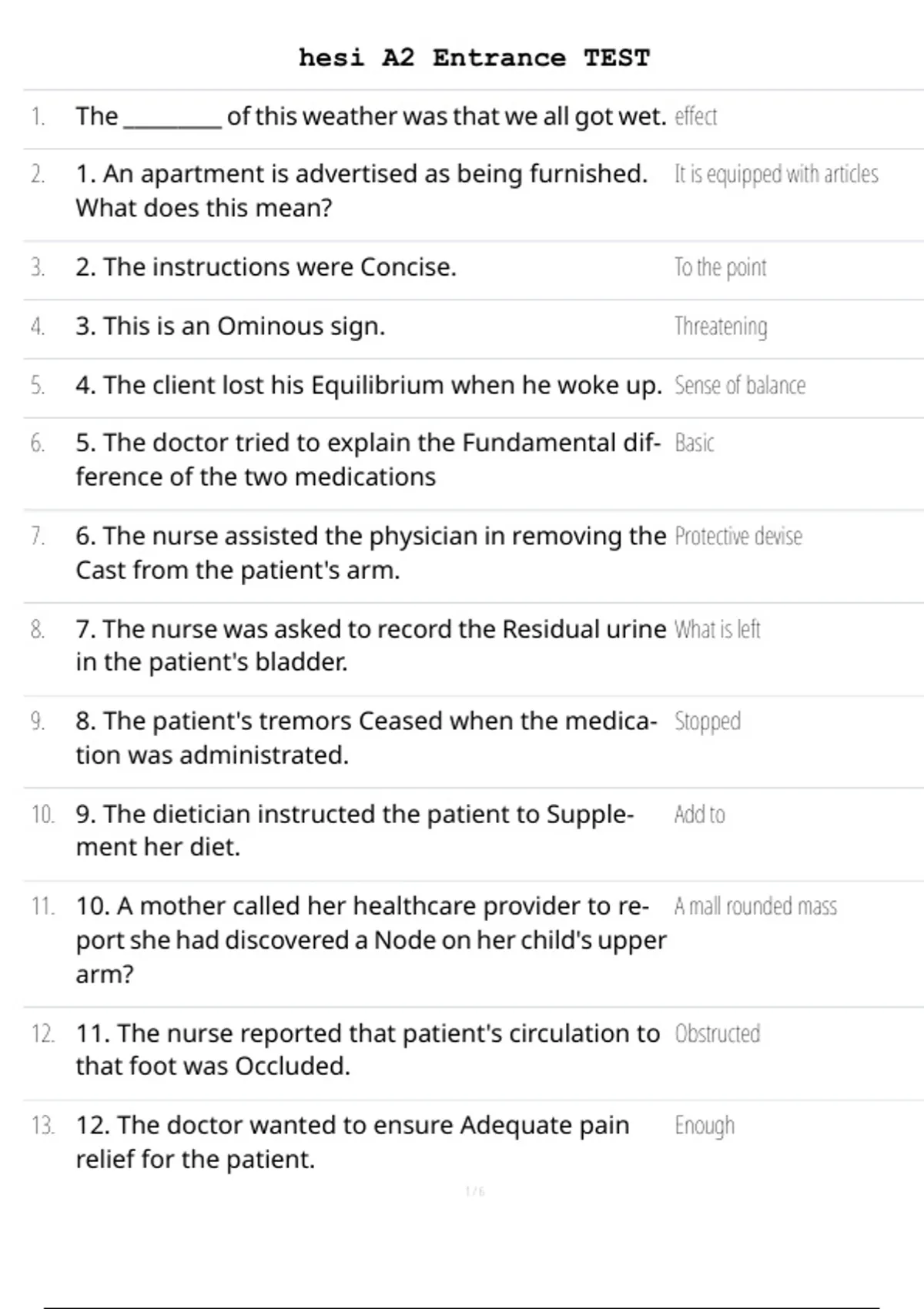 13. 12. The doctor wanted to ensure Adequate pain Enough