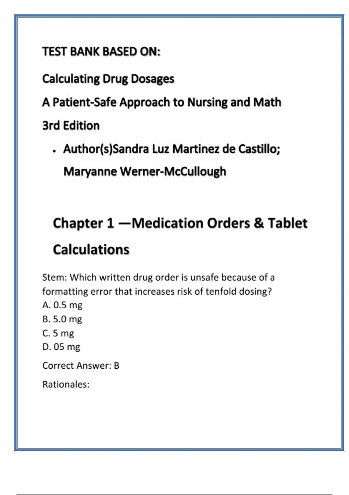 , • Correct (B): 5.0 mg — Unsafe because the trailing zero