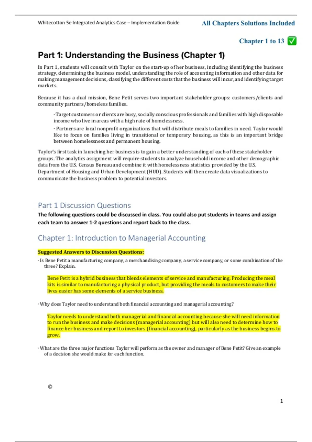 , Whitecotton 5e Integrated Analytics Case – Implementation Guide