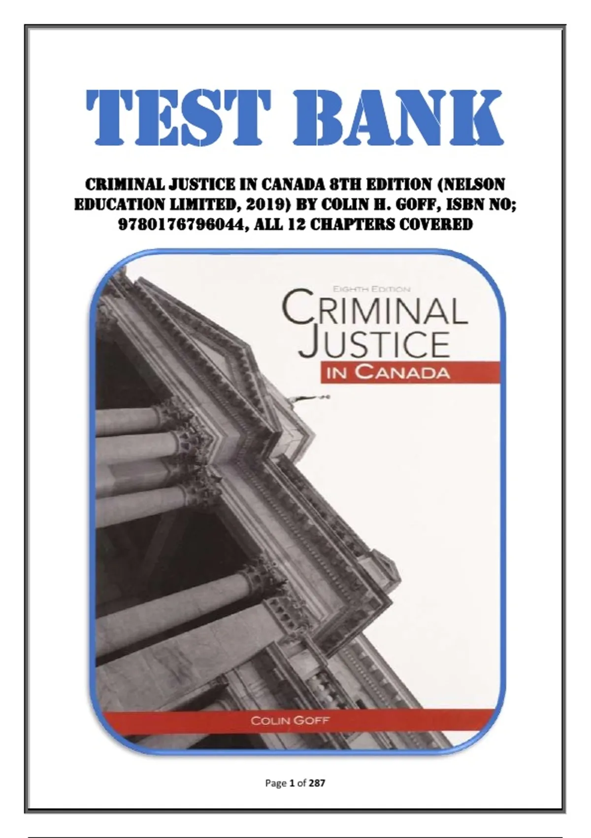 ,Test Bank for Criminal Justice in Canada 8th Edition (Nelson Education Limited, 2019) by
