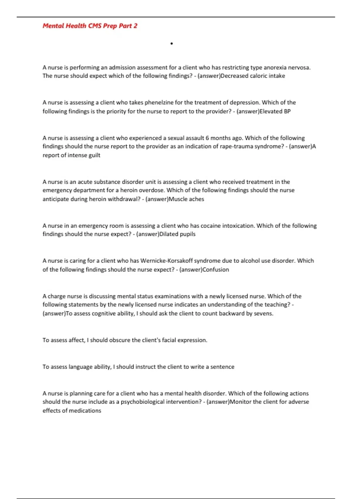 The DSM-5 indicates expected assessment findings of mental health disorders.