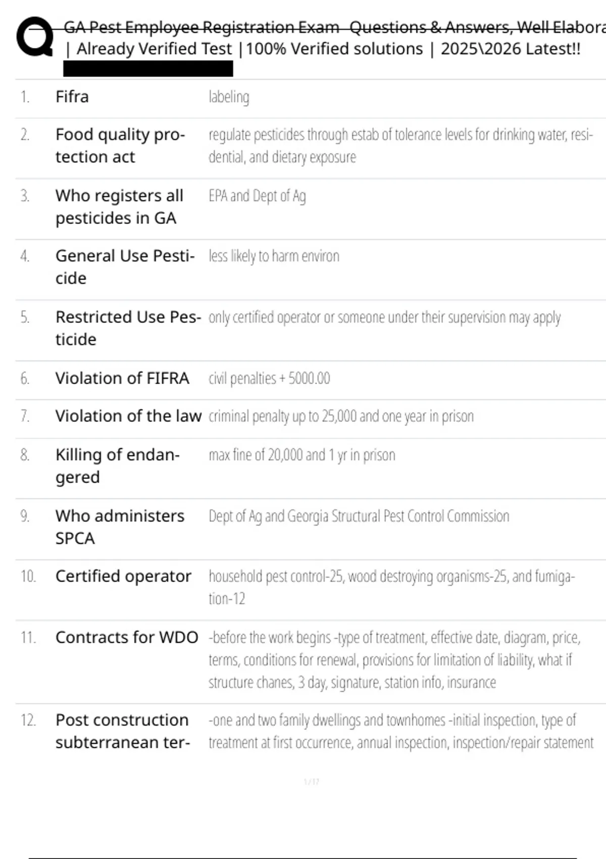 , GA Pest Employee Registration Exam Questions & Answers, Well Elabora