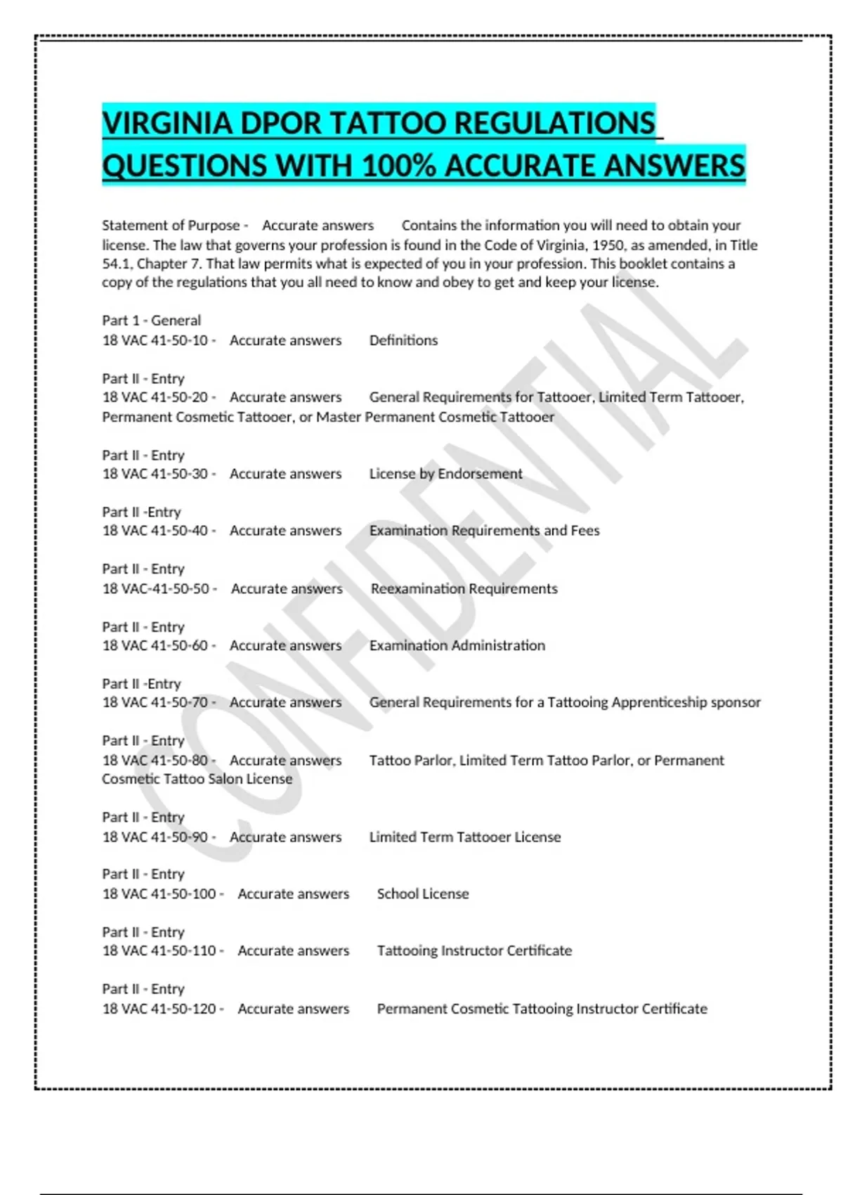 VIRGINIA DPOR TATTOO REGULATIONS QUESTIONS WITH 100% ACCURATE ANSWERS