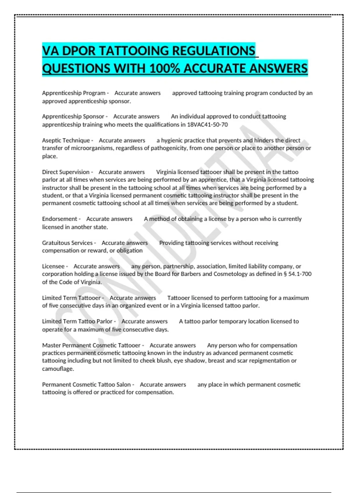 Direct Supervision - Accurate answers Virginia licensed tattooer shall be present in the tattoo