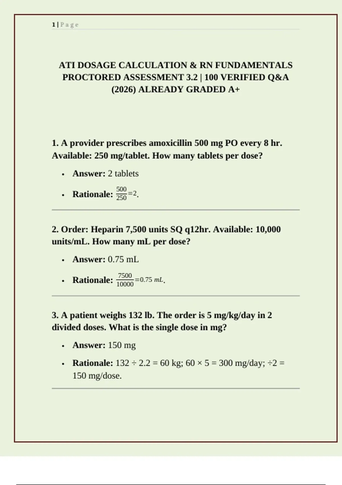 ATI DOSAGE CALCULATION & RN FUNDAMENTALS