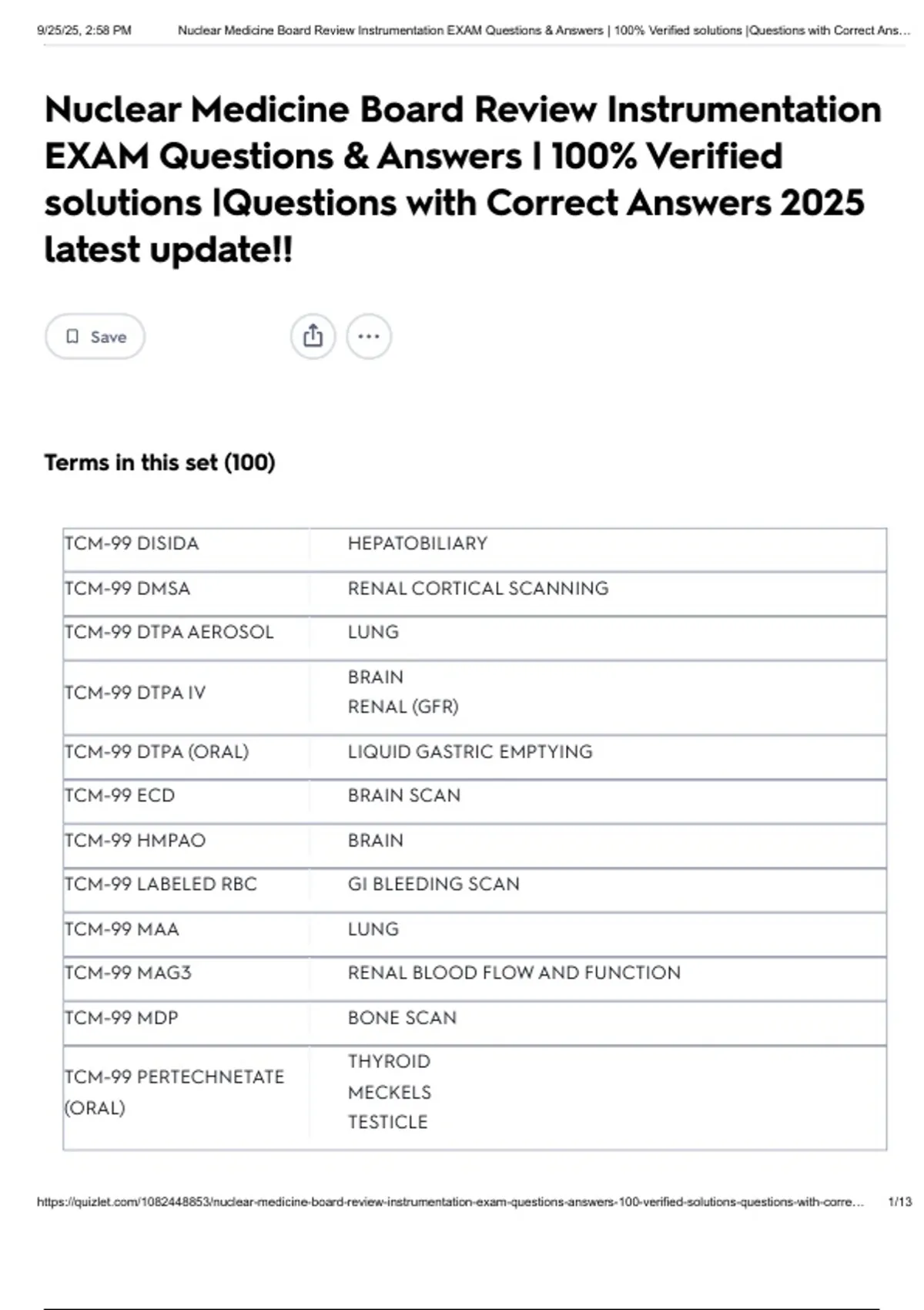 , 9/25/25, 2:58 PM Nuclear Medicine Board Review Instrumentation EXAM Questions & Answers | 100% Verified solutions |Questions with Correct Ans…