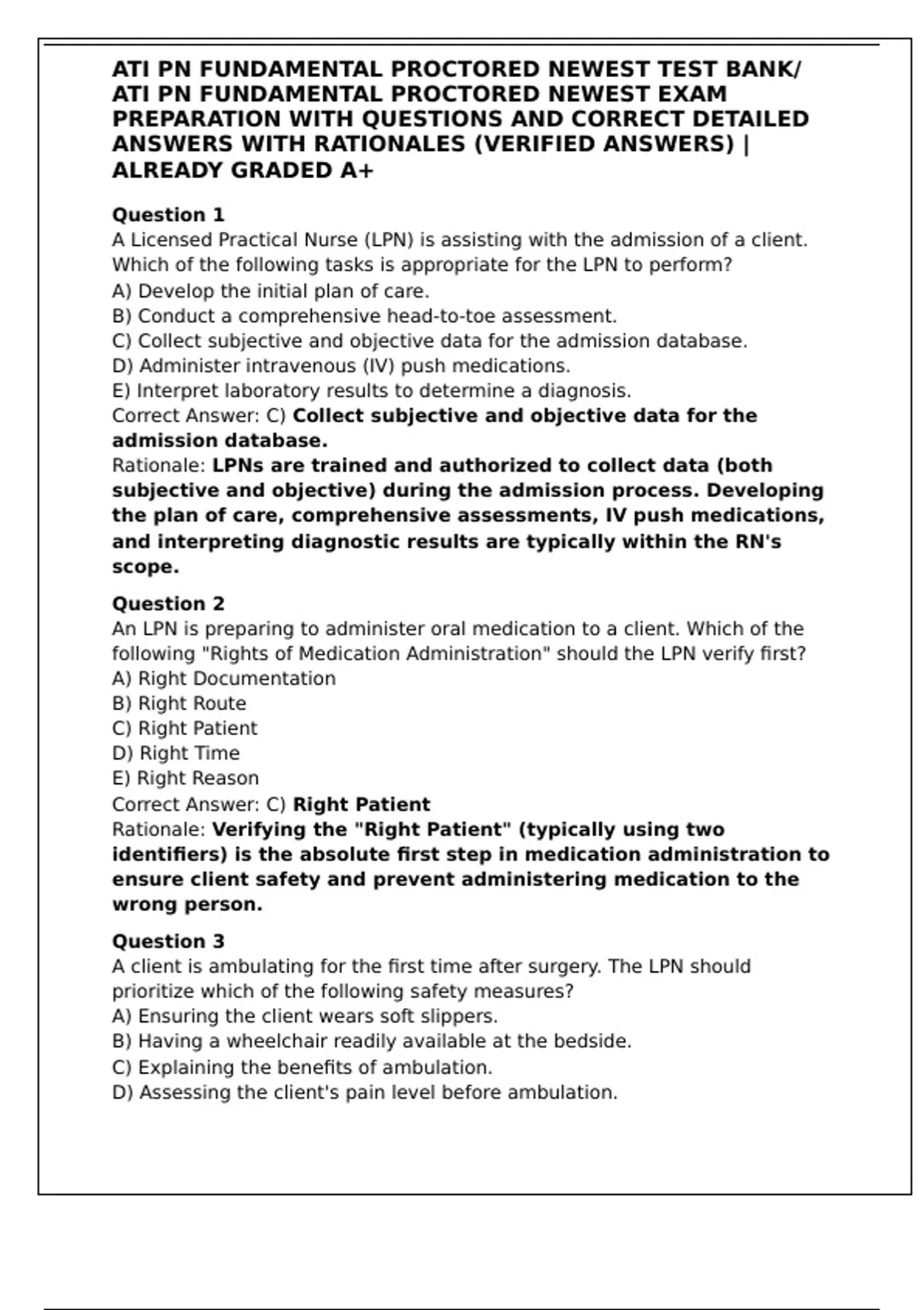 ANSWERS WITH RATIONALES (VERIFIED ANSWERS) |