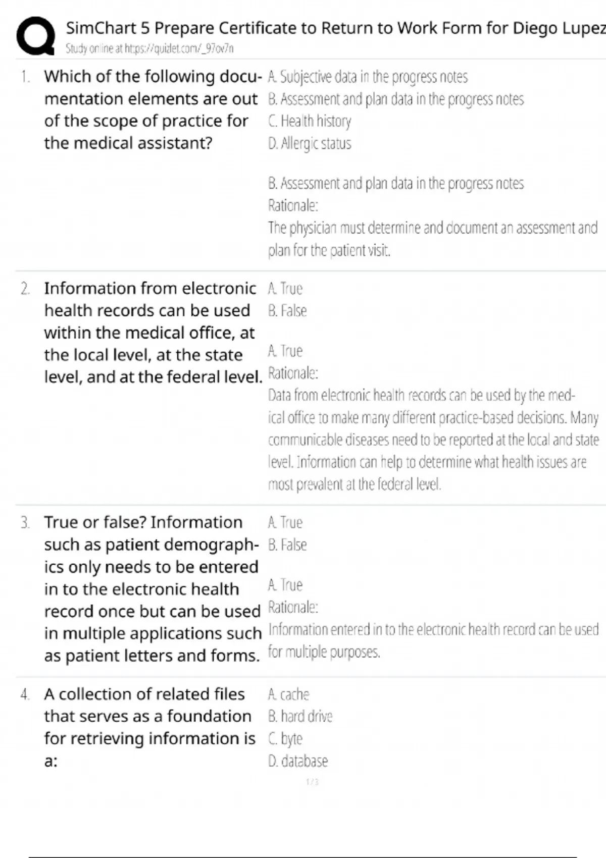 SimChart 5 Return to Work Form Test Bank / Diego Lupez Case Study / 2025 Update / Score 100%
