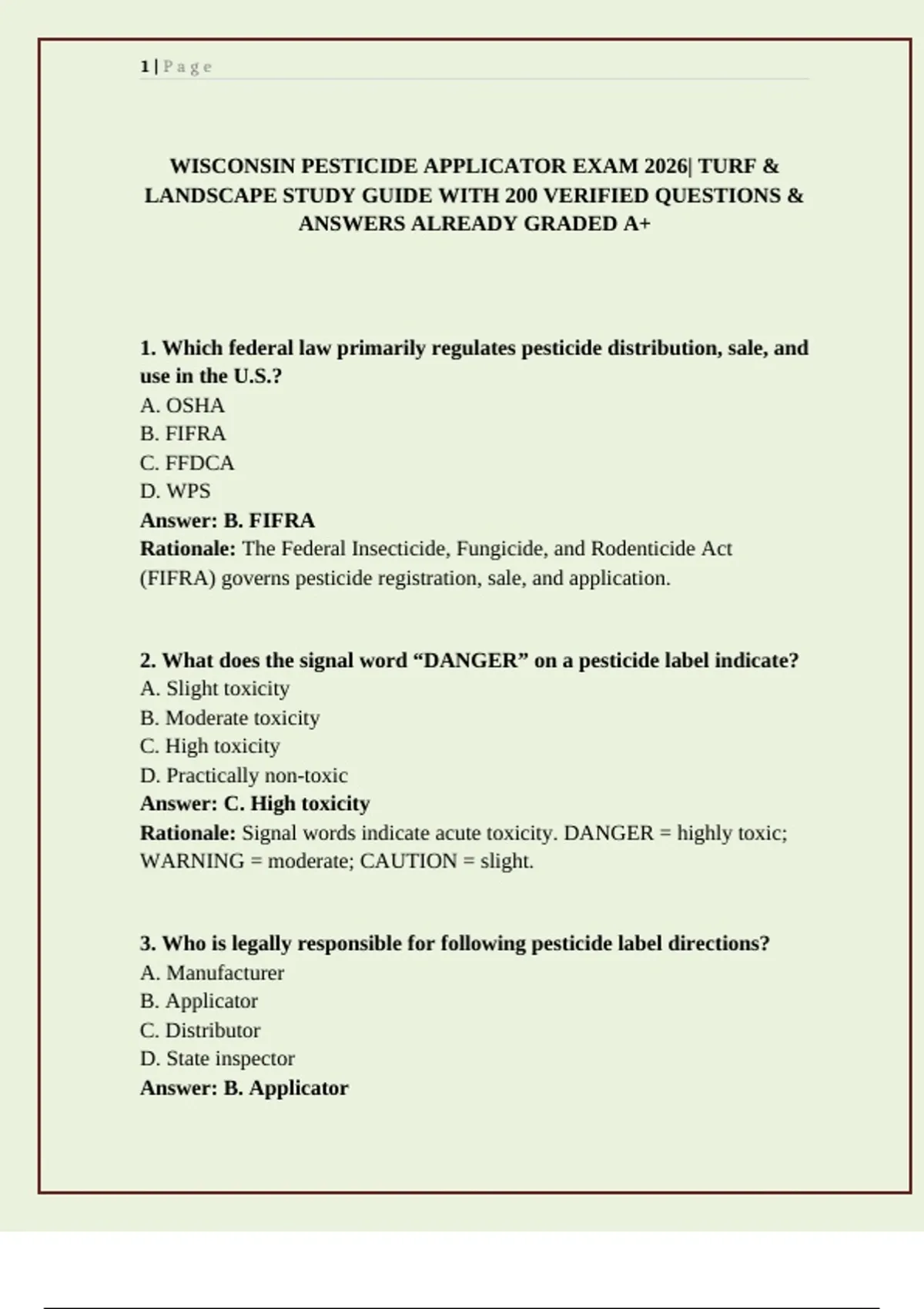 WISCONSIN PESTICIDE APPLICATOR EXAM 2026| TURF &