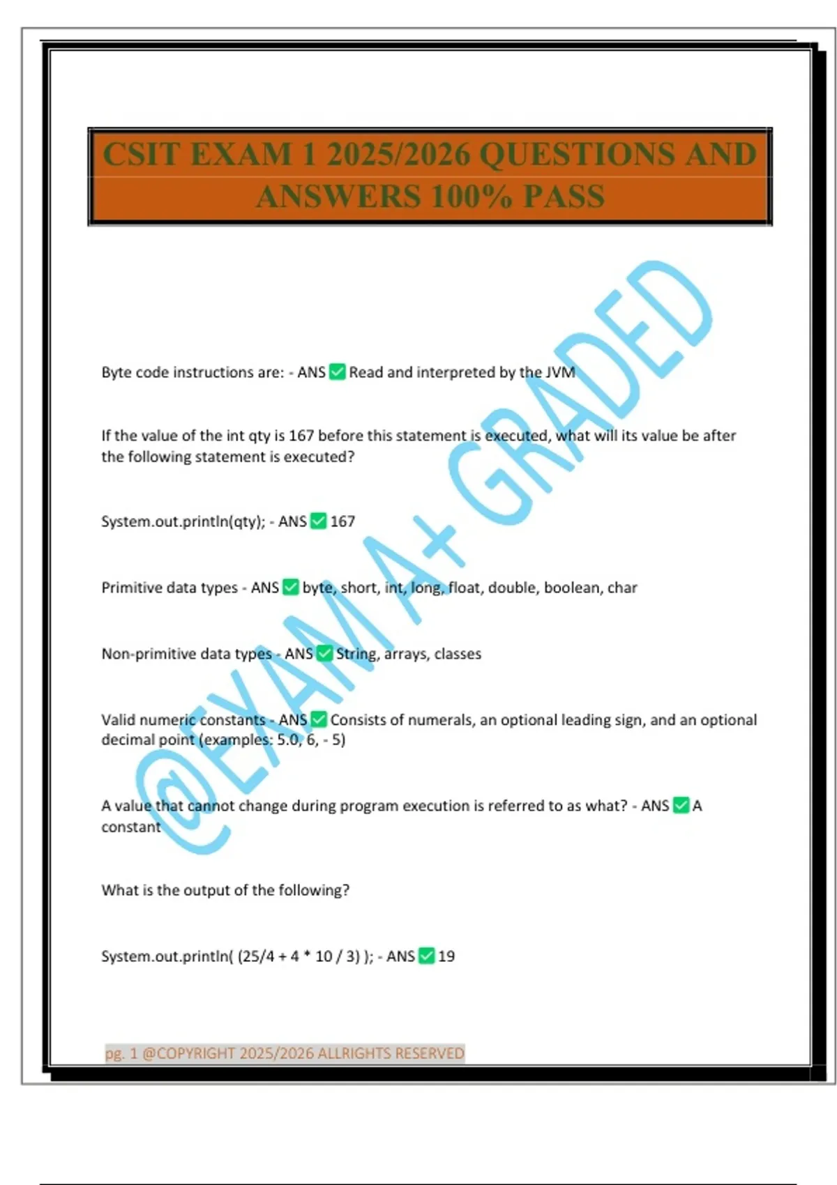 CSIT EXAM 1 2025/2026 QUESTIONS AND