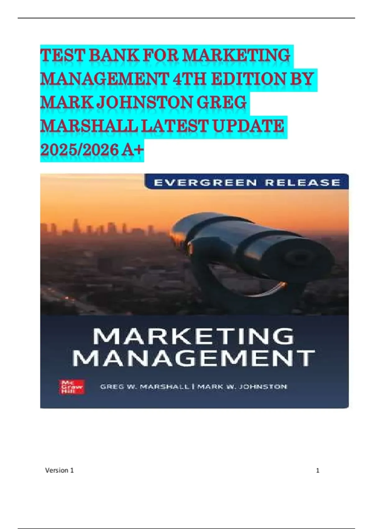 TEST BANK FOR MARKETING MANAGEMENT 4TH EDITION BY MARK JOHNSTON GREG MARSHALL LATEST UPDATE 2025/2026 A+