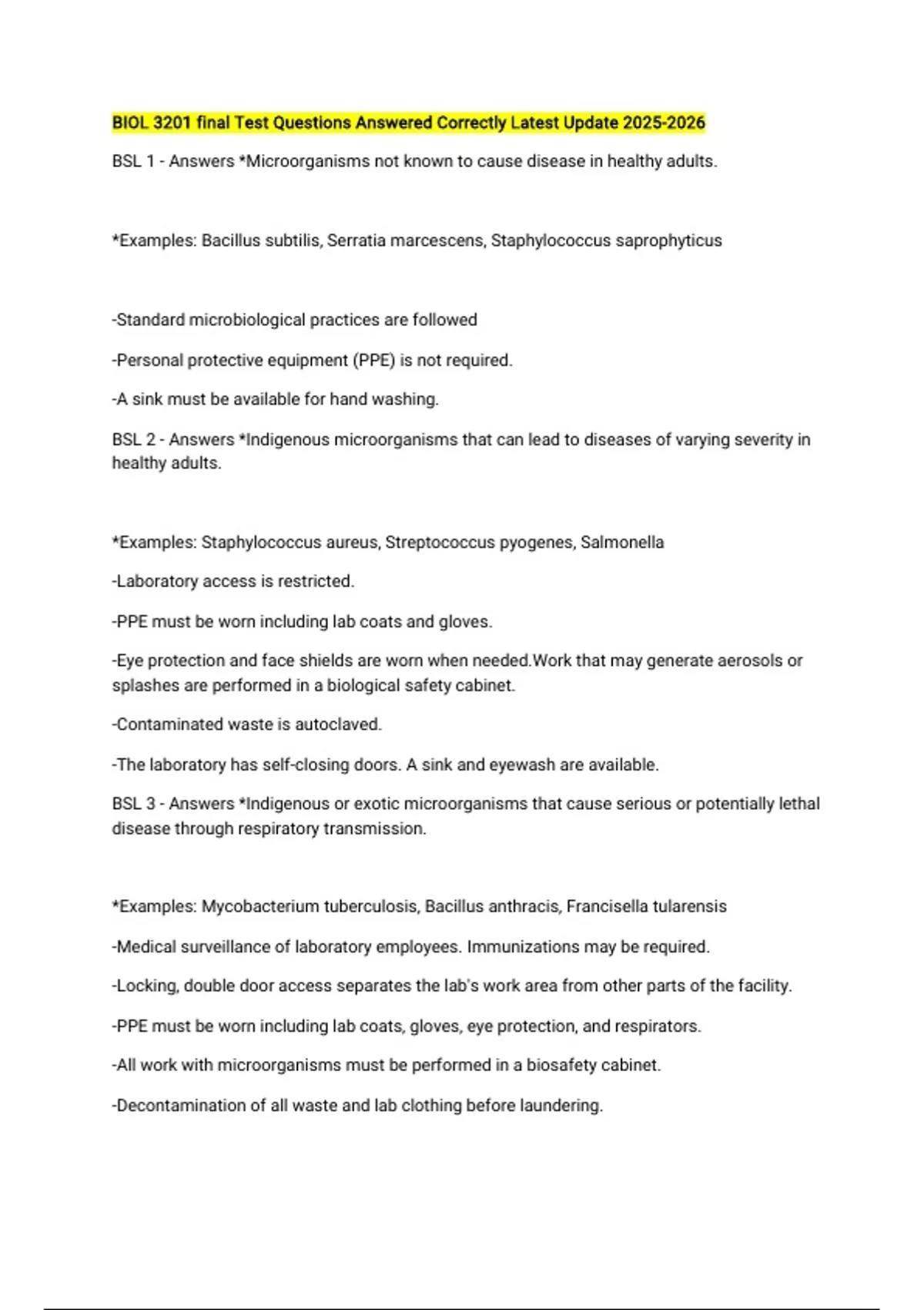 BSL 1 - Answers *Microorganisms not known to cause disease in healthy adults.