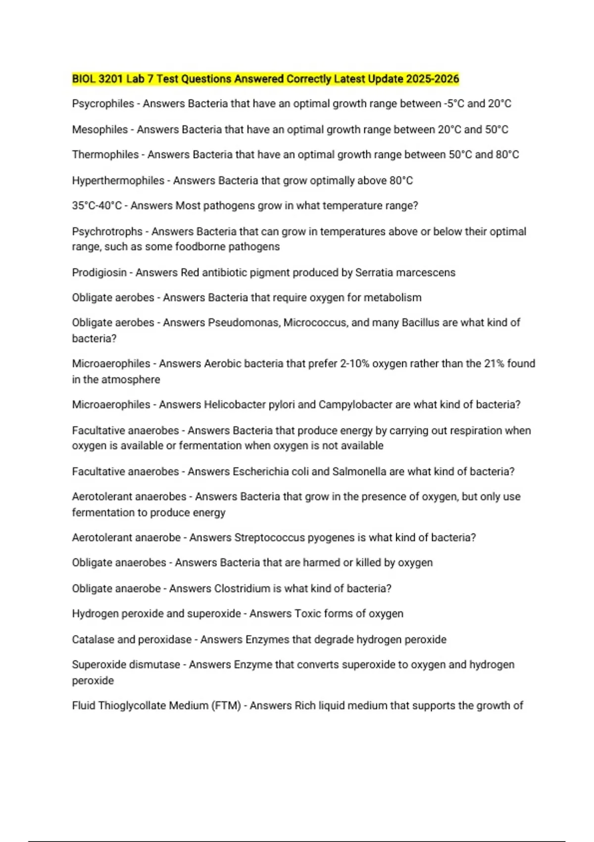Fluid Thioglycollate Medium (FTM) - Answers Rich liquid medium that supports the growth of