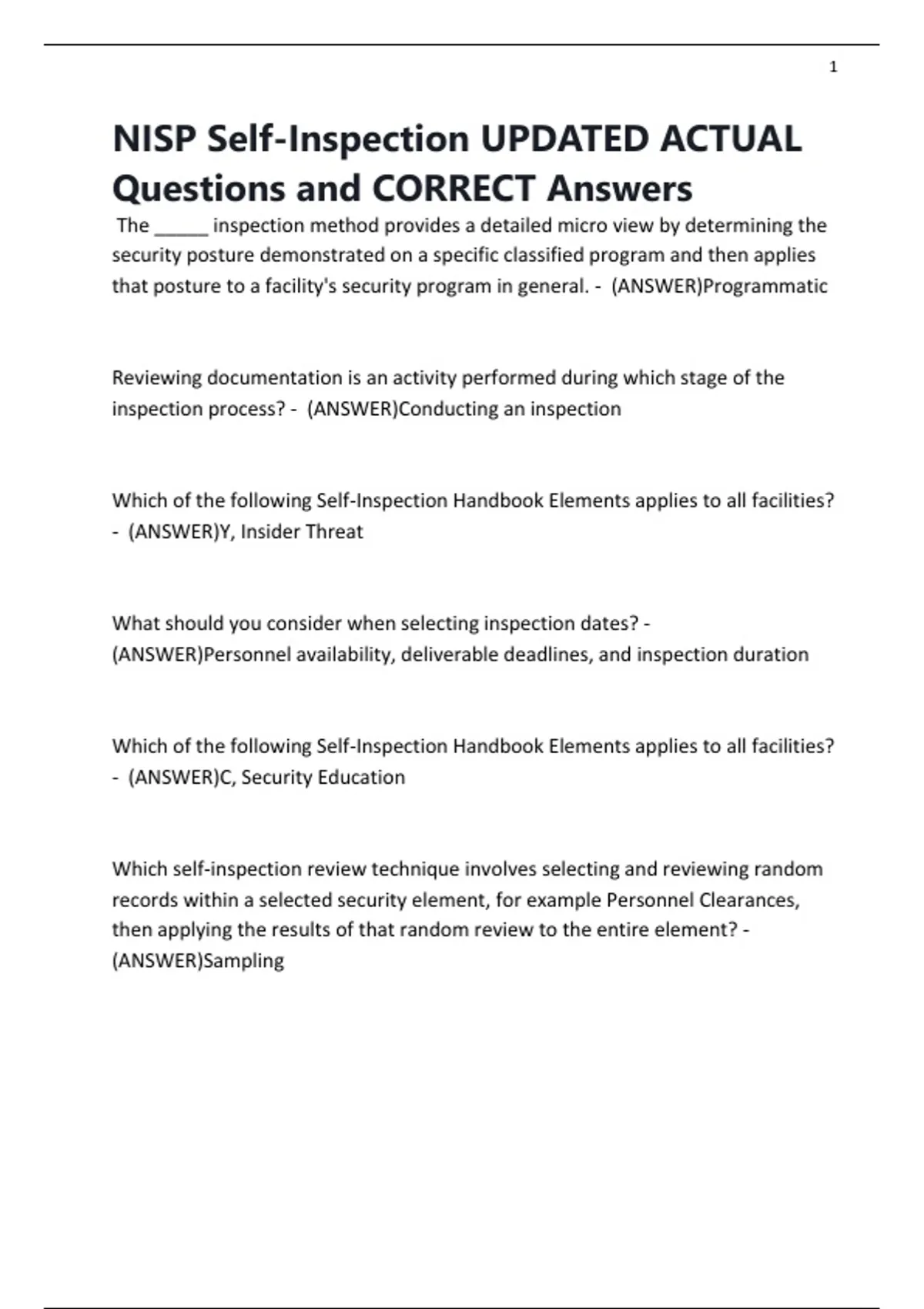 NISP Self-Inspection UPDATED ACTUAL