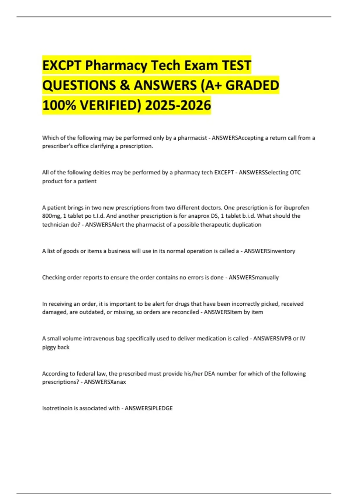 QUESTIONS & ANSWERS (A+ GRADED