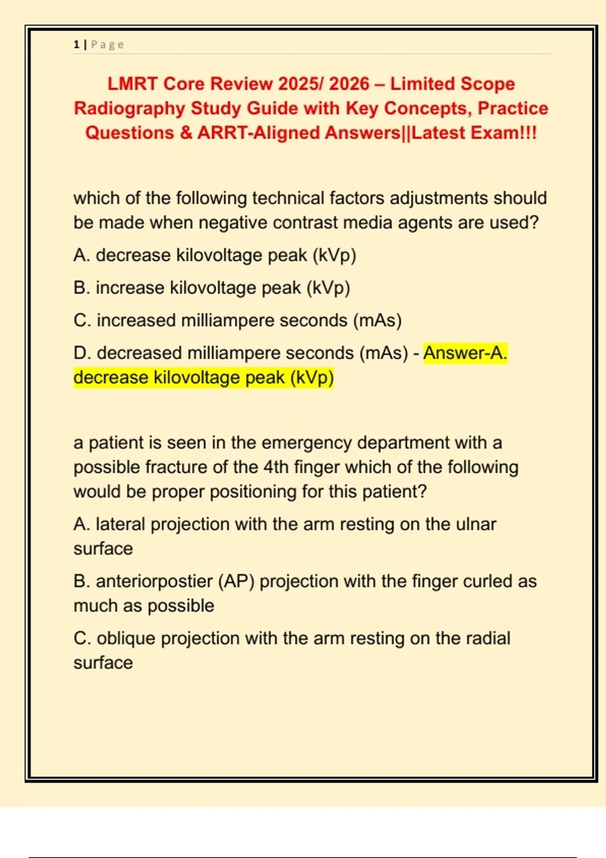 LMRT Core Review 2025/ 2026 – Limited Scope Radiography Study Guide with Key Concepts, Practice Questions & ARRT-Aligned Answers||Latest Exam!!!