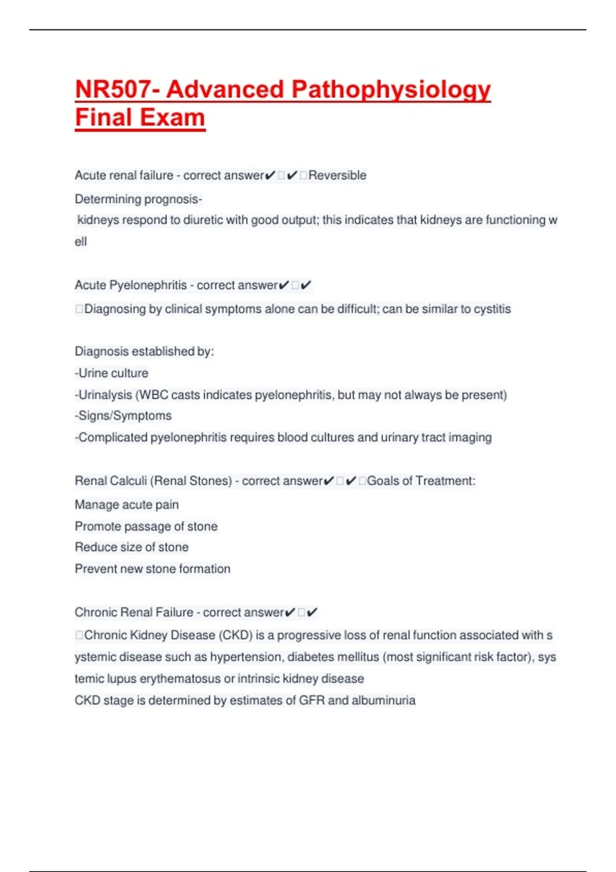 NR507 / NR 507 Final Exam (Chamberlain, 2025/2026) – Advanced Pathophysiology Complete Guide with Questions and Verified Answers | 100% Correct | Grade