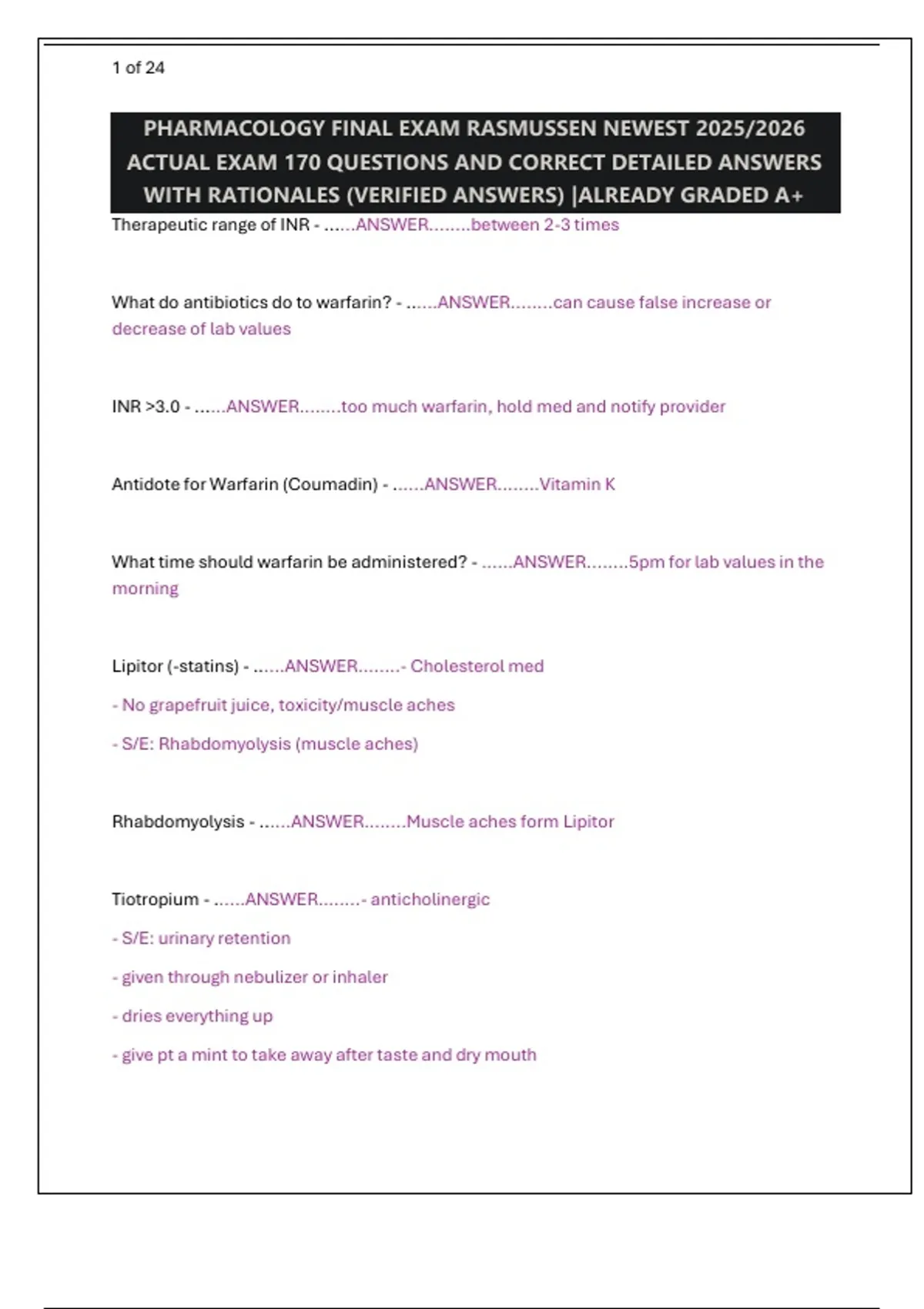 PHARMACOLOGY FINAL EXAM RASMUSSEN NEWEST 2025/2026