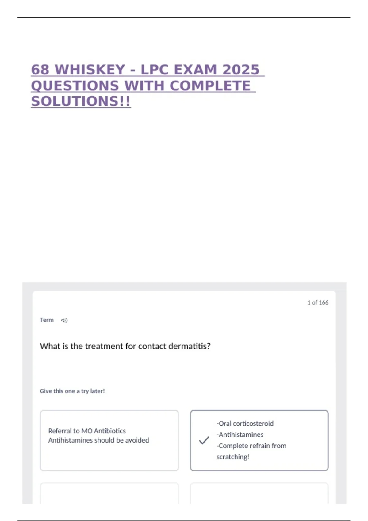 68 WHISKEY - LPC EXAM 2025 QUESTIONS WITH COMPLETE SOLUTIONS!!