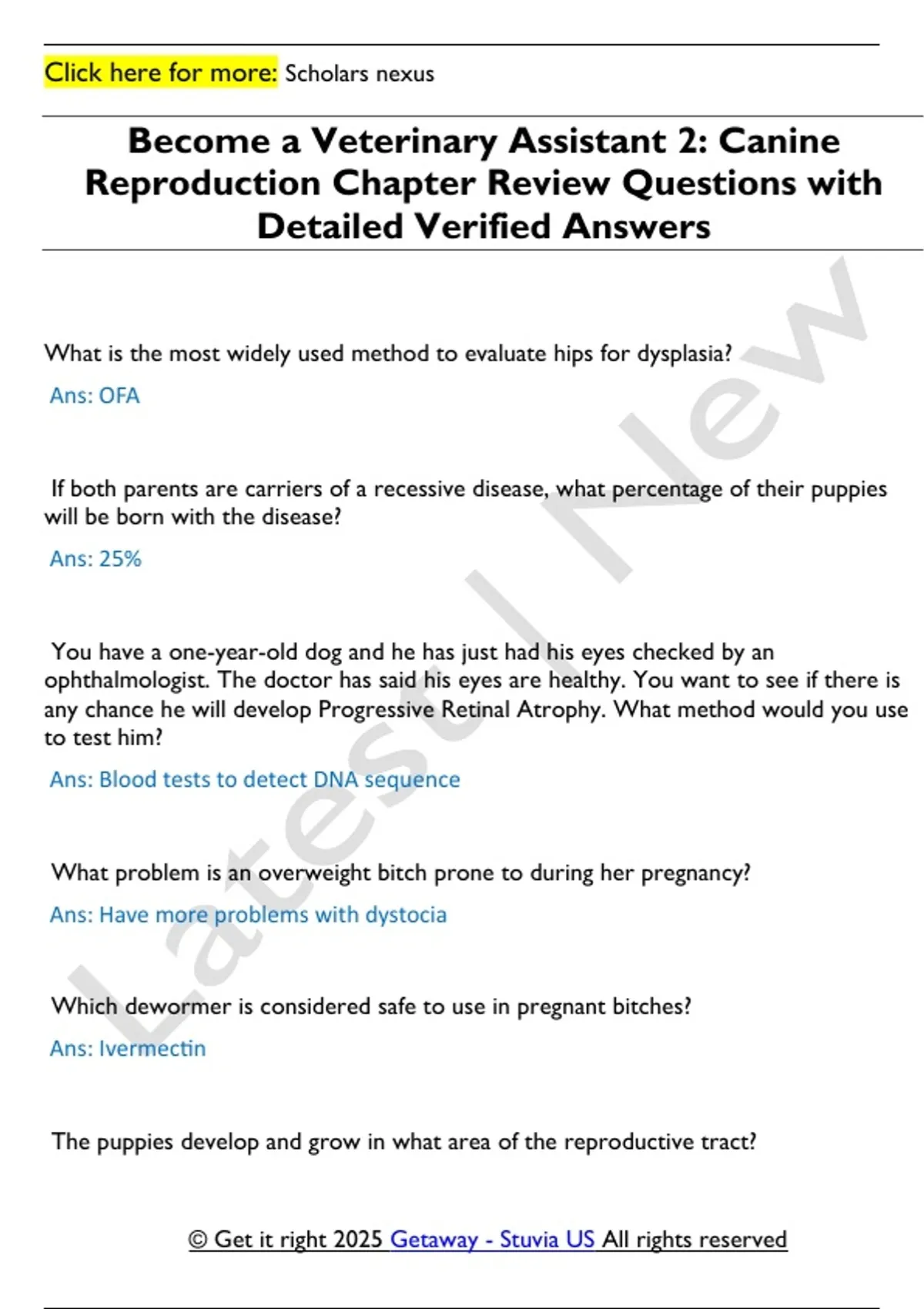 Become a Veterinary Assistant 2: Canine Reproduction Chapter Quizzes Review Questions with Detailed Verified Answers