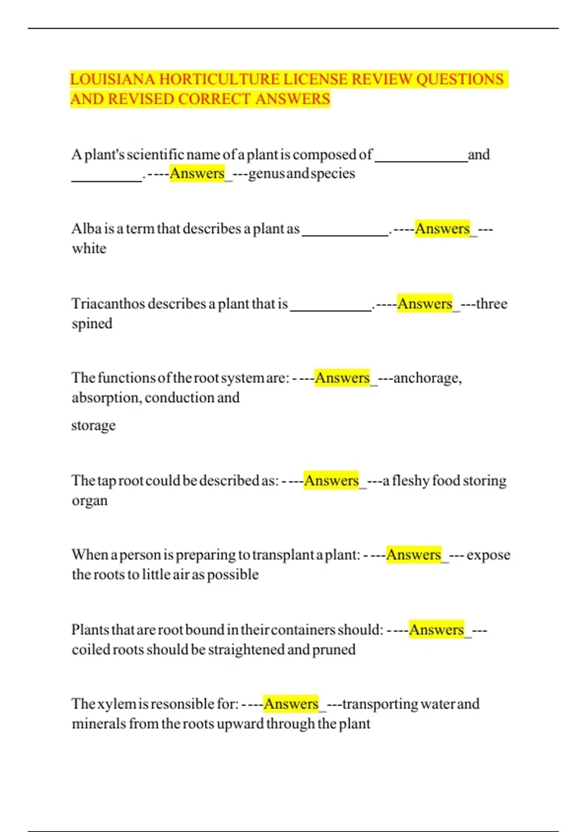 LOUISIANA HORTICULTURE LICENSE REVIEW QUESTIONS