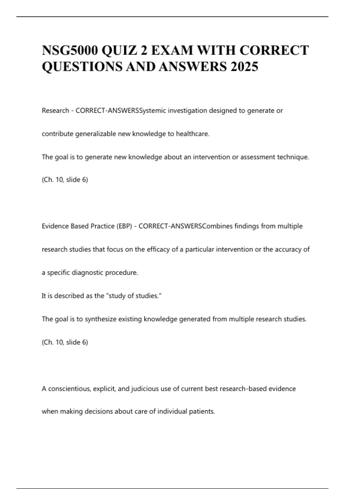 NSG5000 QUIZ 2 EXAM WITH CORRECT
